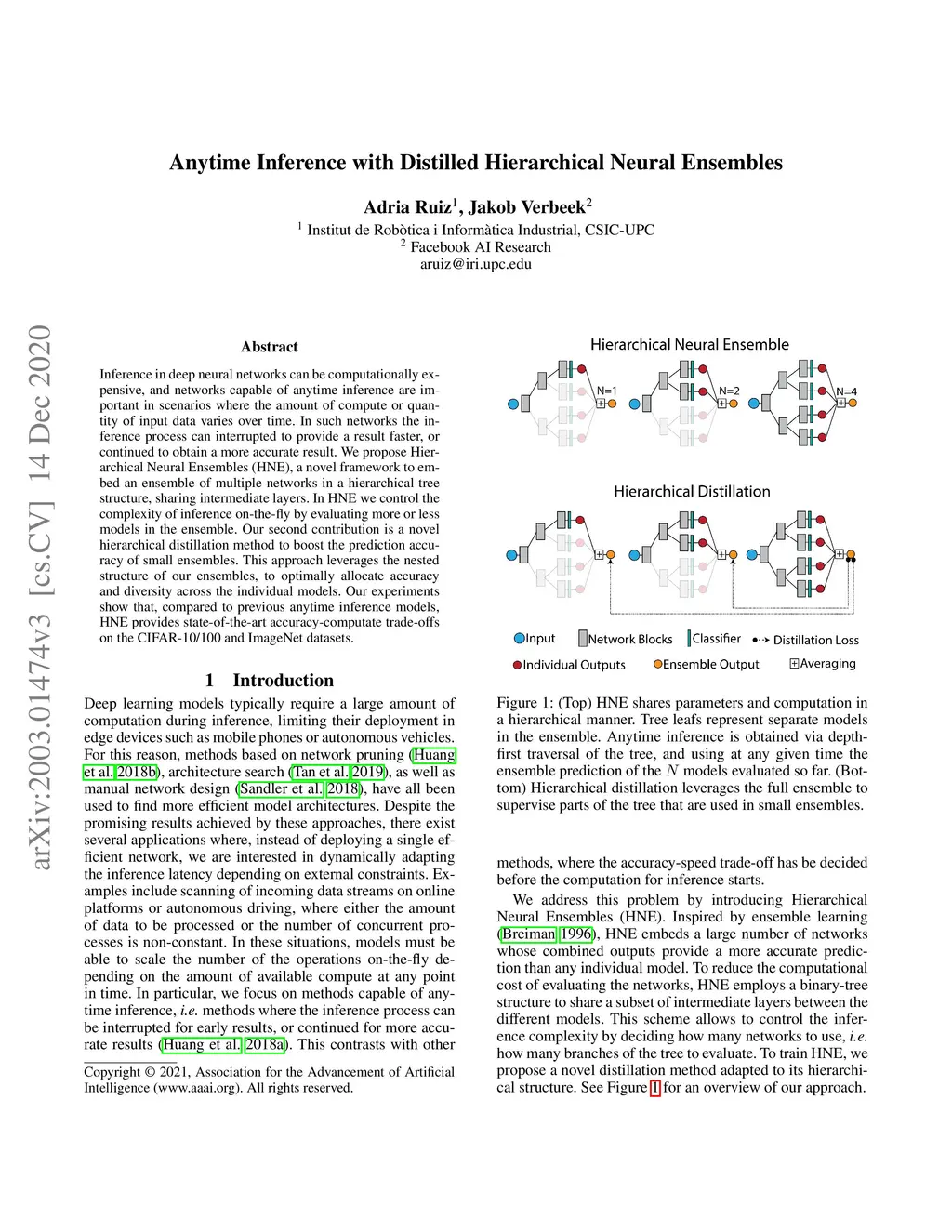 Anytime Inference with Distilled Hierarchical Neural Ensembles