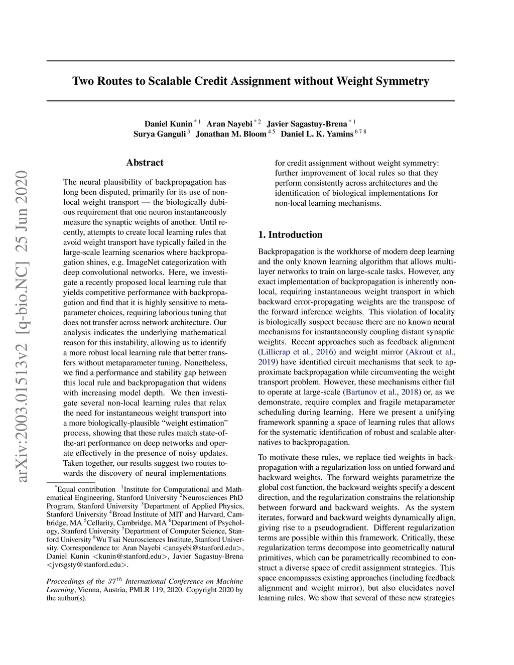 Two Routes to Scalable Credit Assignment without Weight Symmetry
