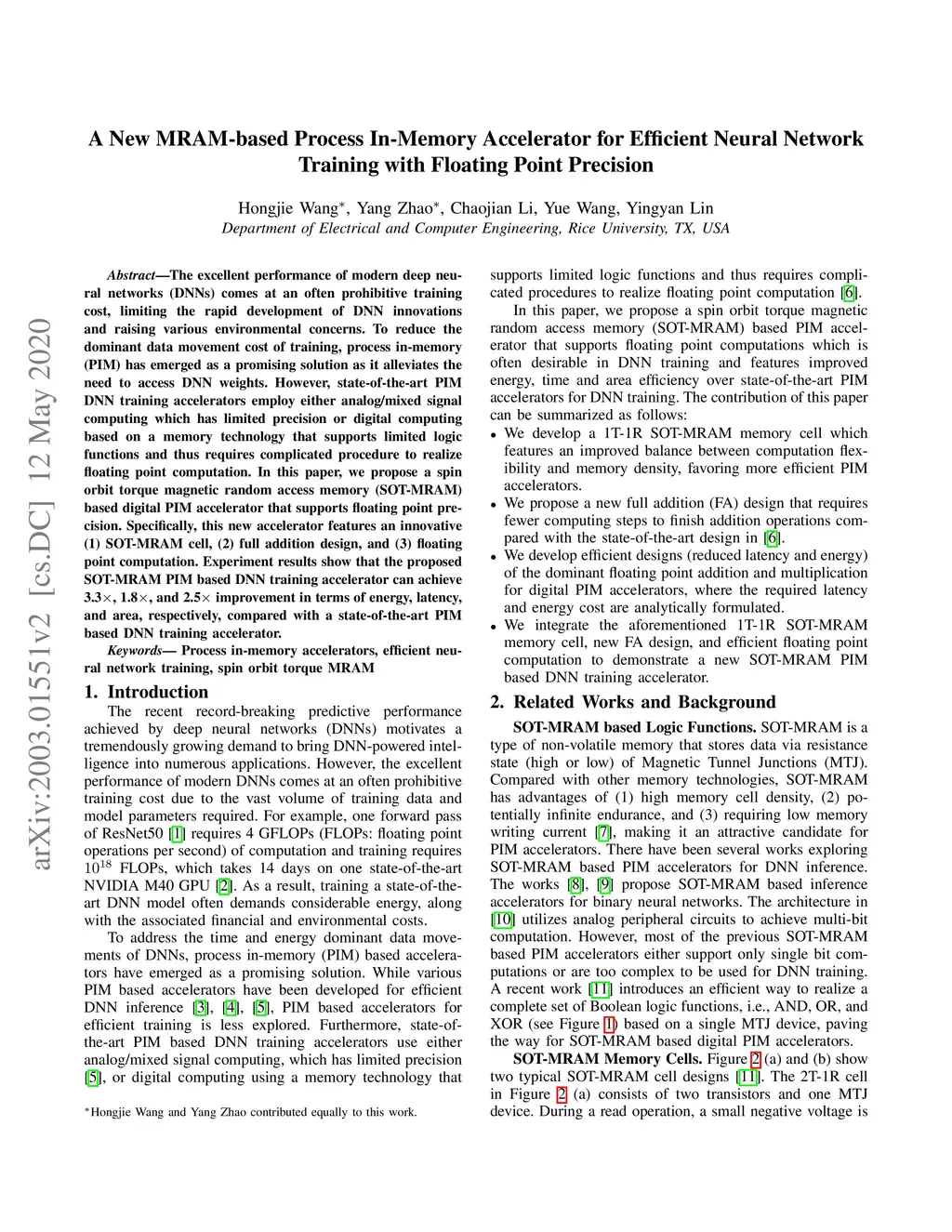 A New MRAM-based Process In-Memory Accelerator for Efficient Neural