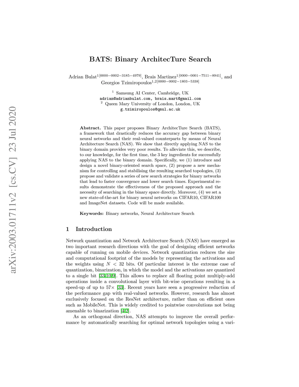 BATS: Binary ArchitecTure Search