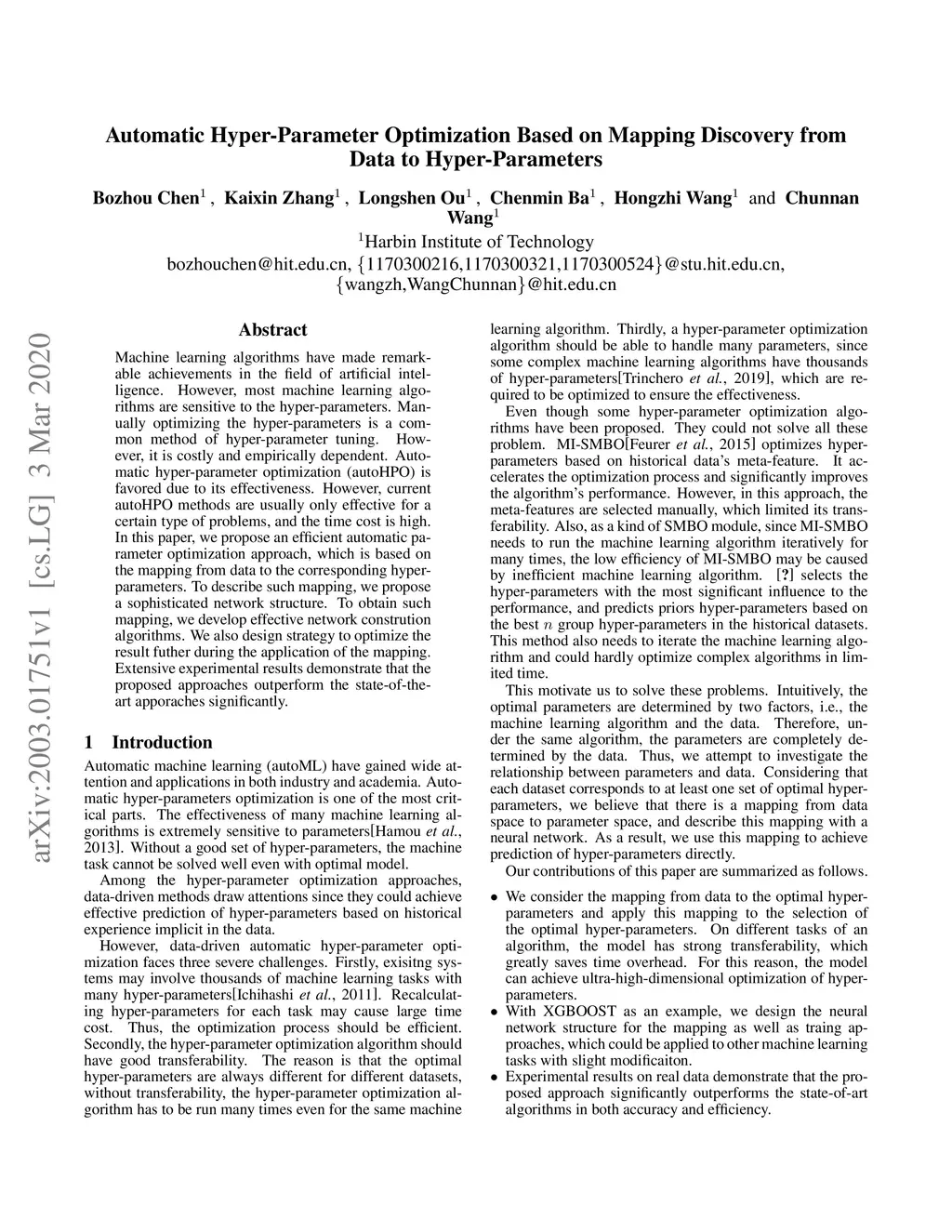 Automatic Hyper-Parameter Optimization Based on Mapping Discovery from