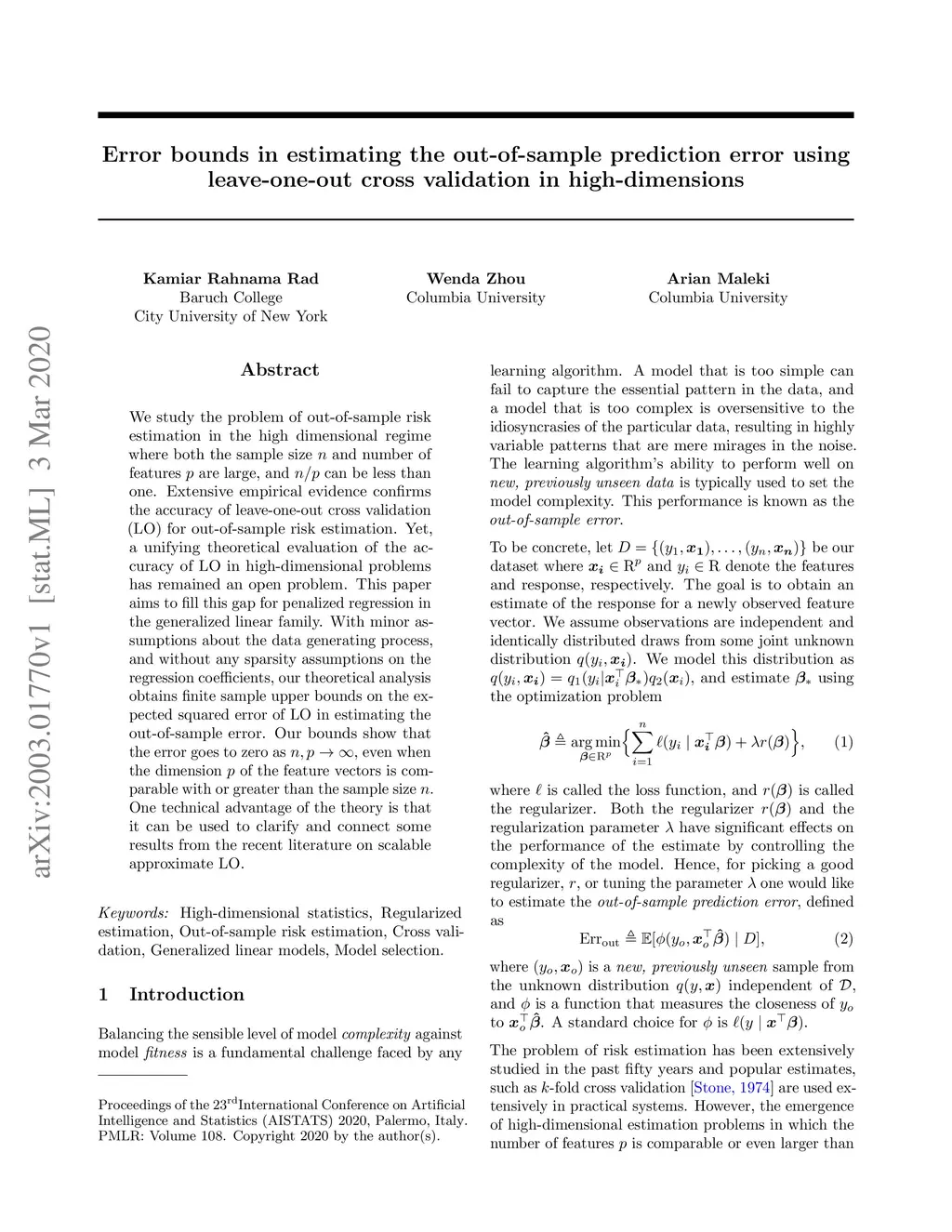 leave-one-out cross validation in high-dimensions