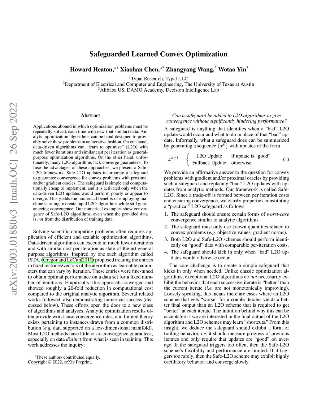 Safeguarded Learned Convex Optimization