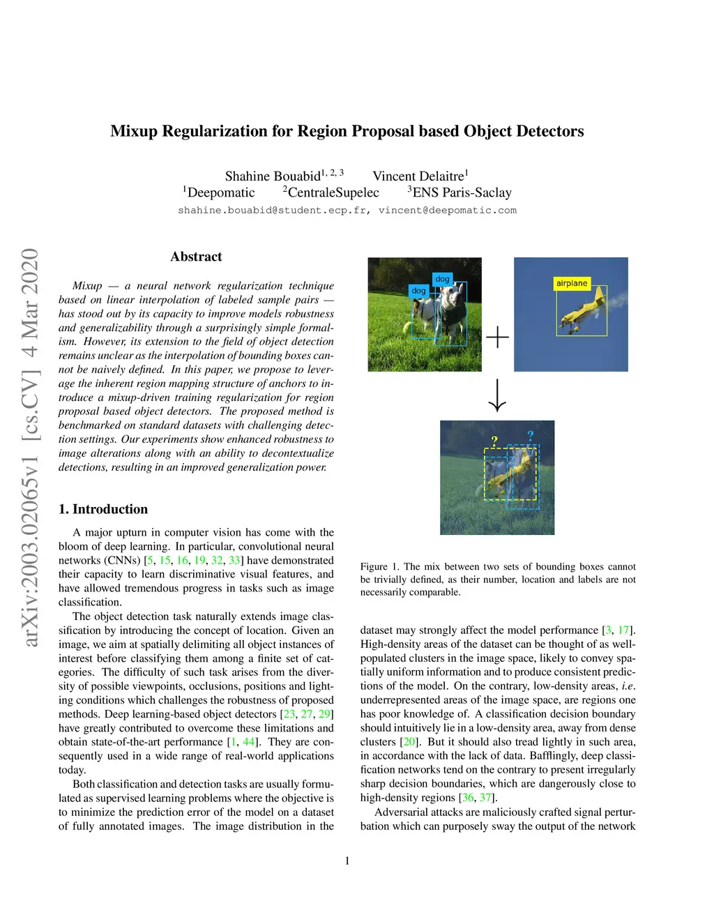 Mixup - a neural network regularization technique based on linear interpolation of labeled sample pairs - has stood out by its capacity to improve model's robustness and generalizability through a surprisingly simple formalism. However, its extension to the field of object detection remains unclear as the interpolation of bounding boxes cannot be naively defined. In this paper, we propose to leverage the inherent region mapping structure of anchors to introduce a mixup-driven training regularization for region proposal based object detectors. The proposed method is benchmarked on standard datasets with challenging detection settings. Our experiments show an enhanced robustness to image alterations along with an ability to decontextualize detections, resulting in an improved generalization power.