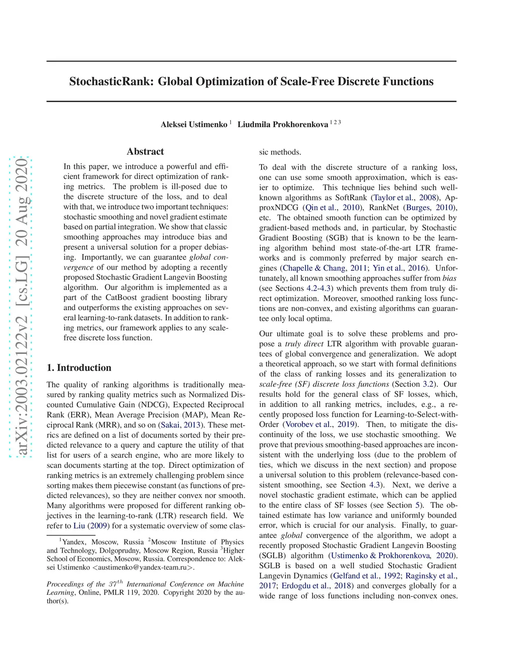 StochasticRank: Global Optimization of Scale-Free Discrete Functions