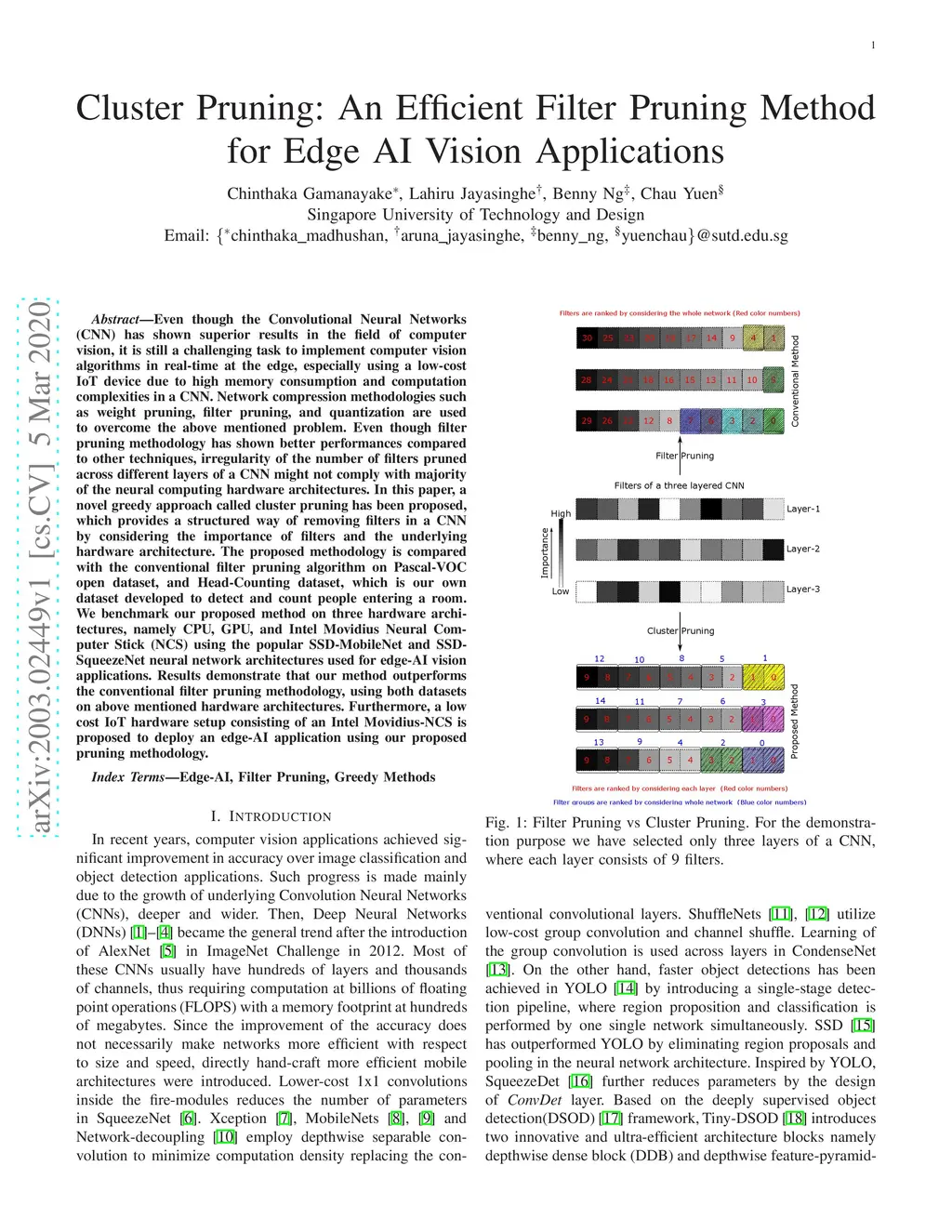 Cluster Pruning: An Efficient Filter Pruning Method for Edge AI Vision