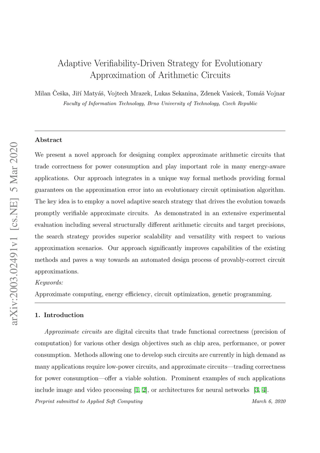 Adaptive Verifiability-Driven Strategy for Evolutionary Approximation of