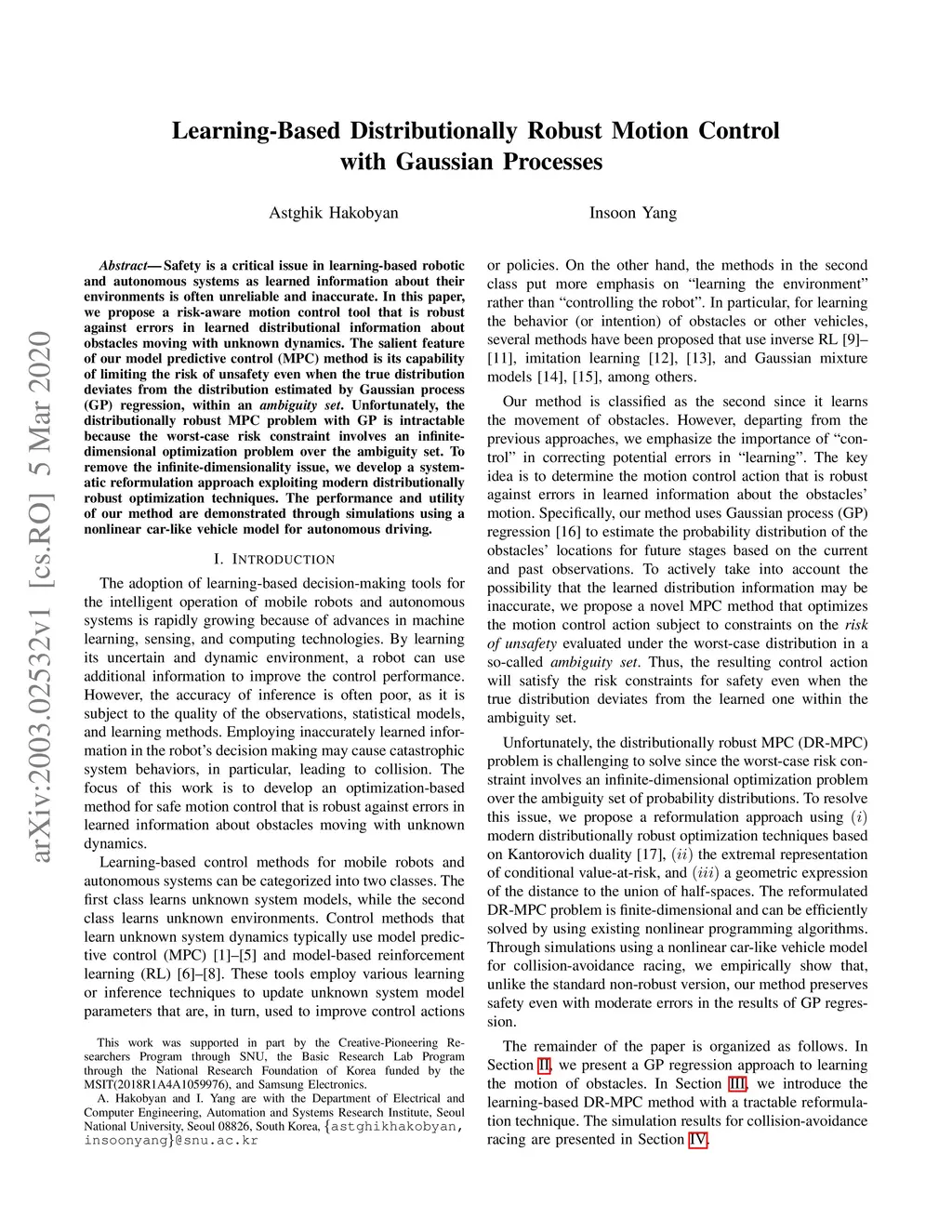 Learning-based distributionally robust motion control with Gaussian