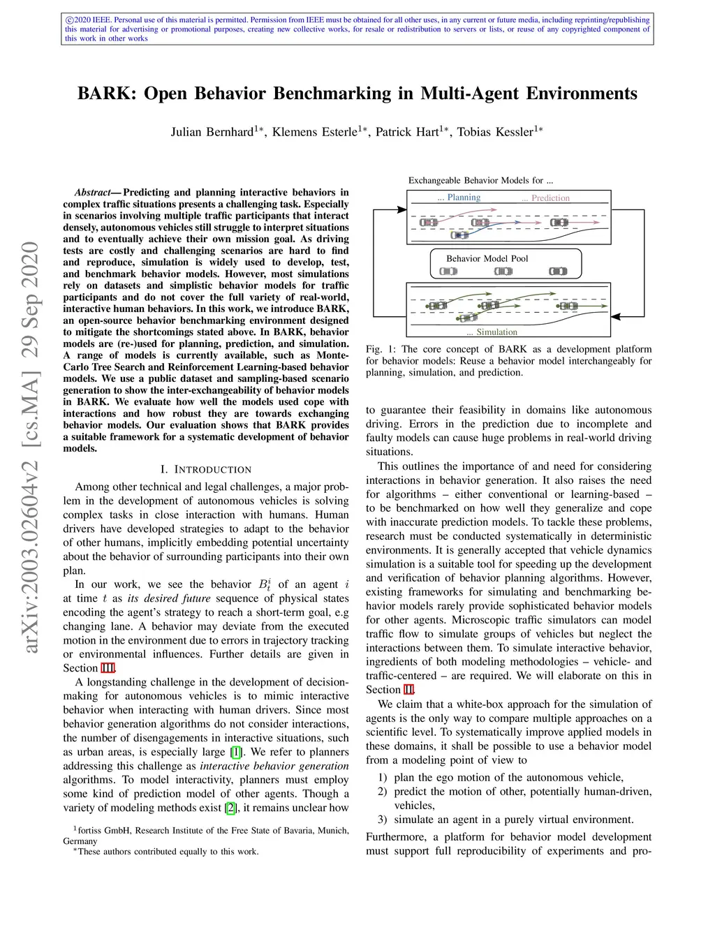 BARK: Open Behavior Benchmarking in Multi-Agent Environments