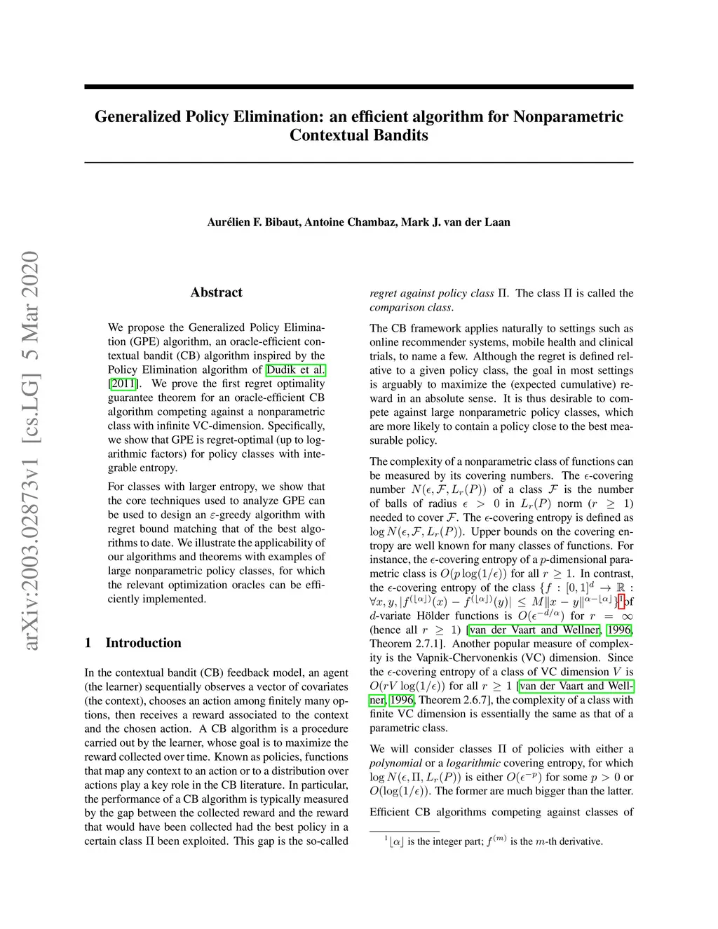 Generalized Policy Elimination: an efficient algorithm for Nonparametric