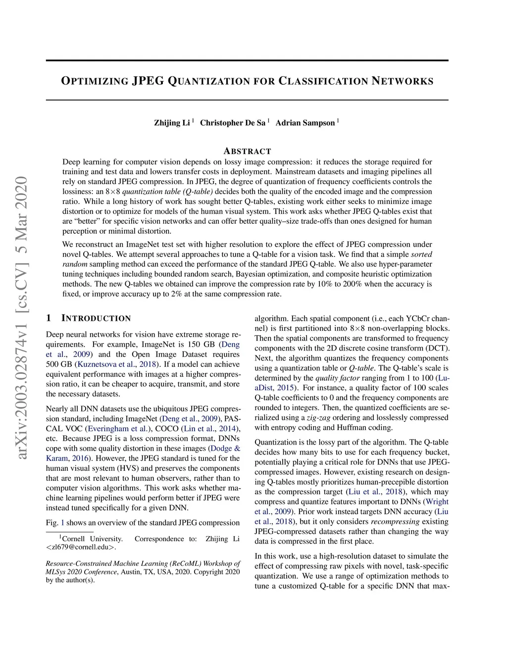 Deep learning for computer vision depends on lossy image compression: it reduces the storage required for training and test data and lowers transfer costs in deployment. Mainstream datasets and imaging pipelines all rely on standard JPEG compression. In JPEG, the degree of quantization of frequency coefficients controls the lossiness: an 8 by 8 quantization table (Q-table) decides both the quality of the encoded image and the compression ratio. While a long history of work has sought better Q-tables, existing work either seeks to minimize image distortion or to optimize for models of the human visual system. This work asks whether JPEG Q-tables exist that are "better" for specific vision networks and can offer better quality--size trade-offs than ones designed for human perception or minimal distortion. We reconstruct an ImageNet test set with higher resolution to explore the effect of JPEG compression under novel Q-tables. We attempt several approaches to tune a Q-table for a vision task. We find that a simple sorted random sampling method can exceed the performance of the standard JPEG Q-table. We also use hyper-parameter tuning techniques including bounded random search, Bayesian optimization, and composite heuristic optimization methods. The new Q-tables we obtained can improve the compression rate by 10% to 200% when the accuracy is fixed, or improve accuracy up to at the same compression rate.