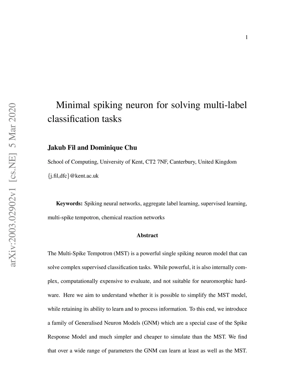 The Multi-Spike Tempotron (MST) is a powerful single spiking neuron model that can solve complex supervised classification tasks. While powerful, it is also internally complex, computationally expensive to evaluate, and not suitable for neuromorphic hardware. Here we aim to understand whether it is possible to simplify the MST model, while retaining its ability to learn and to process information. To this end, we introduce a family of Generalised Neuron Models (GNM) which are a special case of the Spike Response Model and much simpler and cheaper to simulate than the MST. We find that over a wide range of parameters the GNM can learn at least as well as the MST. We identify the temporal autocorrelation of the membrane potential as the single most important ingredient of the GNM which enables it to classify multiple spatio-temporal patterns. We also interpret the GNM as a chemical system, thus conceptually bridging computation by neural networks with molecular information processing. We conclude the paper by proposing alternative training approaches for the GNM including error trace learning and error backpropagation.