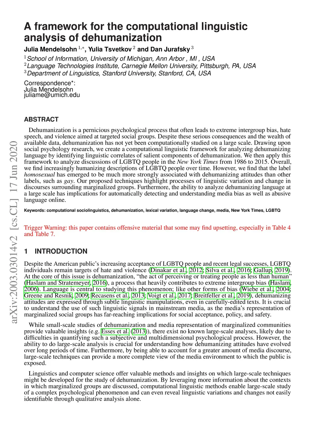 A Framework for the Computational Linguistic Analysis of Dehumanization