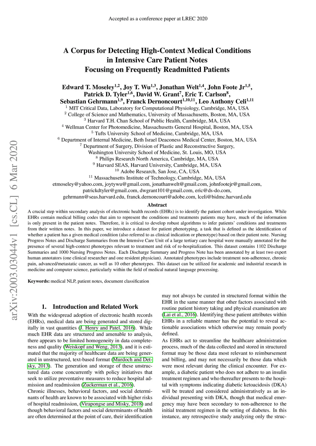 A Corpus for Detecting High-Context Medical Conditions in Intensive Care