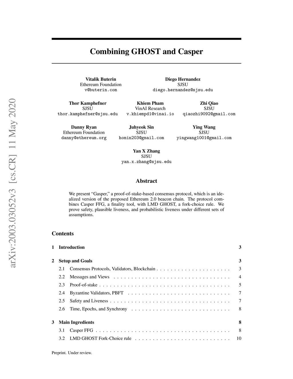 We present "Gasper," a proof-of-stake-based consensus protocol, which is an idealized version of the proposed Ethereum 2.0 beacon chain. The protocol combines Casper FFG, a finality tool, with LMD GHOST, a fork-choice rule. We prove safety, plausible liveness, and probabilistic liveness under different sets of assumptions.