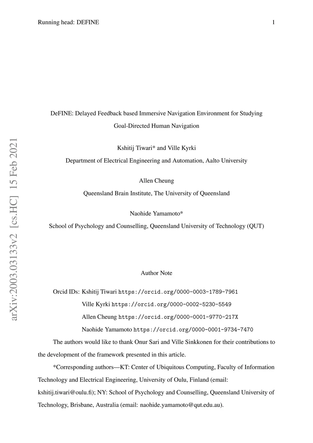 DeFINE: Delayed Feedback based Immersive Navigation Environment for