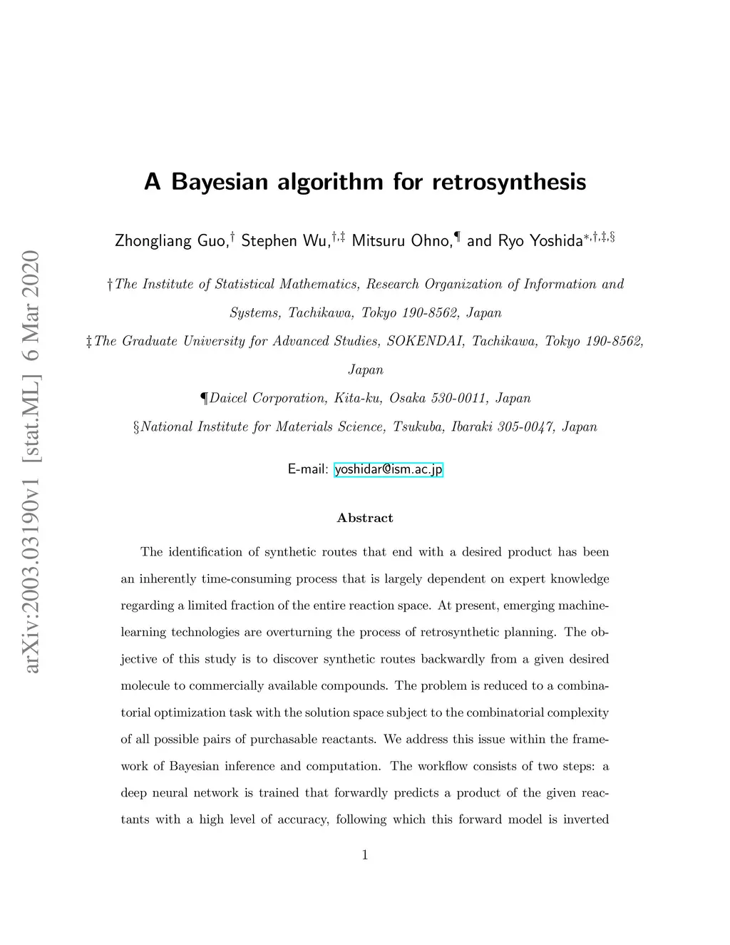 The identification of synthetic routes that end with a desired product has been an inherently time-consuming process that is largely dependent on expert knowledge regarding a limited fraction of the entire reaction space. At present, emerging machine-learning technologies are overturning the process of retrosynthetic planning. The objective of this study is to discover synthetic routes backwardly from a given desired molecule to commercially available compounds. The problem is reduced to a combinatorial optimization task with the solution space subject to the combinatorial complexity of all possible pairs of purchasable reactants. We address this issue within the framework of Bayesian inference and computation. The workflow consists of two steps: a deep neural network is trained that forwardly predicts a product of the given reactants with a high level of accuracy, following which this forward model is inverted into the backward one via Bayes' law of conditional probability. Using the backward model, a diverse set of highly probable reaction sequences ending with a given synthetic target is exhaustively explored using a Monte Carlo search algorithm. The Bayesian retrosynthesis algorithm could successfully rediscover 80.3% and 50.0% of known synthetic routes of single-step and two-step reactions within top-10 accuracy, respectively, thereby outperforming state-of-the-art algorithms in terms of the overall accuracy. Remarkably, the Monte Carlo method, which was specifically designed for the presence of diverse multiple routes, often revealed a ranked list of hundreds of reaction routes to the same synthetic target. We investigated the potential applicability of such diverse candidates based on expert knowledge from synthetic organic chemistry.