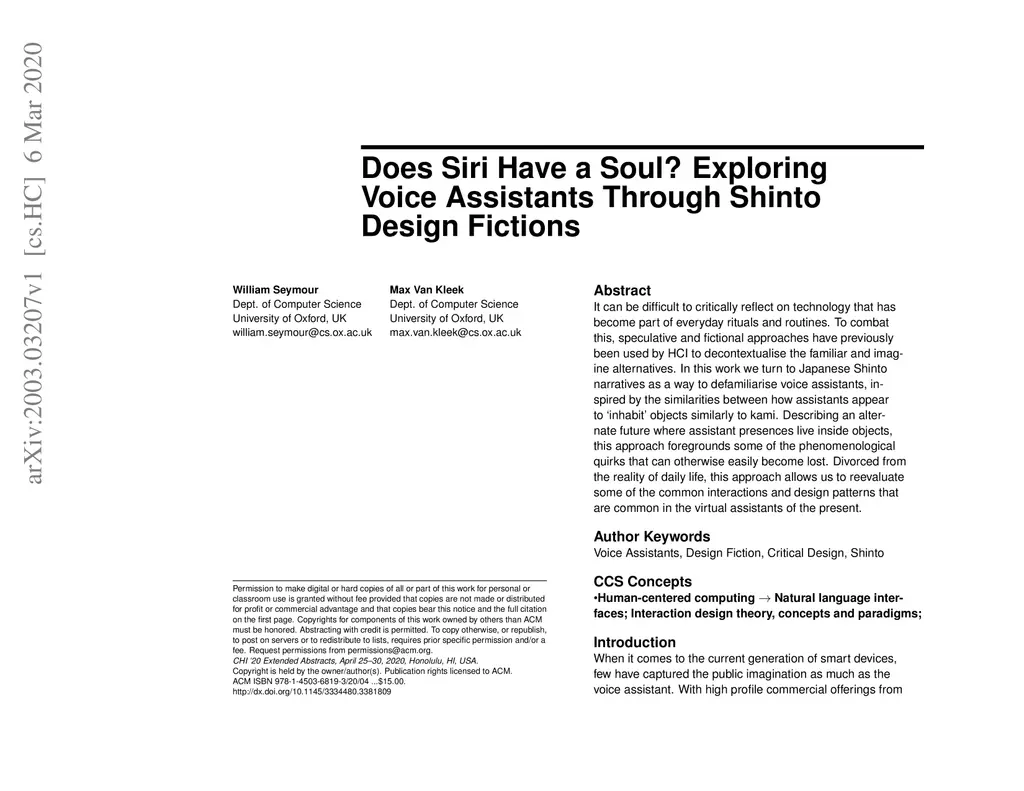 Does Siri Have a Soul? Exploring Voice Assistants Through Shinto Design