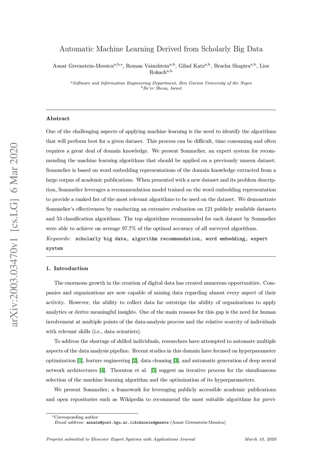 Automatic Machine Learning Derived from Scholarly Big Data