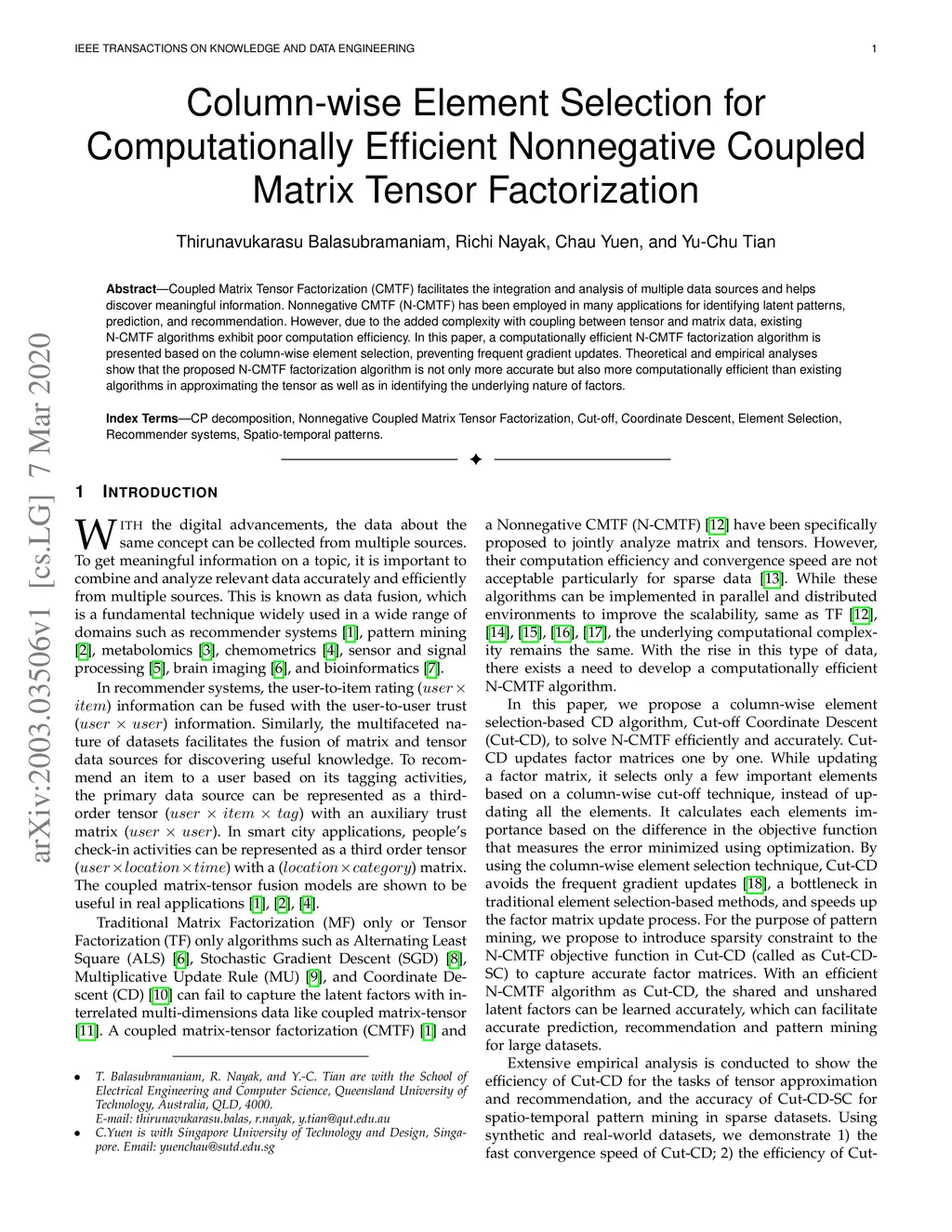 Coupled Matrix Tensor Factorization (CMTF) facilitates the integration and analysis of multiple data sources and helps discover meaningful information. Nonnegative CMTF (N-CMTF) has been employed in many applications for identifying latent patterns, prediction, and recommendation. However, due to the added complexity with coupling between tensor and matrix data, existing N-CMTF algorithms exhibit poor computation efficiency. In this paper, a computationally efficient N-CMTF factorization algorithm is presented based on the column-wise element selection, preventing frequent gradient updates. Theoretical and empirical analyses show that the proposed N-CMTF factorization algorithm is not only more accurate but also more computationally efficient than existing algorithms in approximating the tensor as well as in identifying the underlying nature of factors.