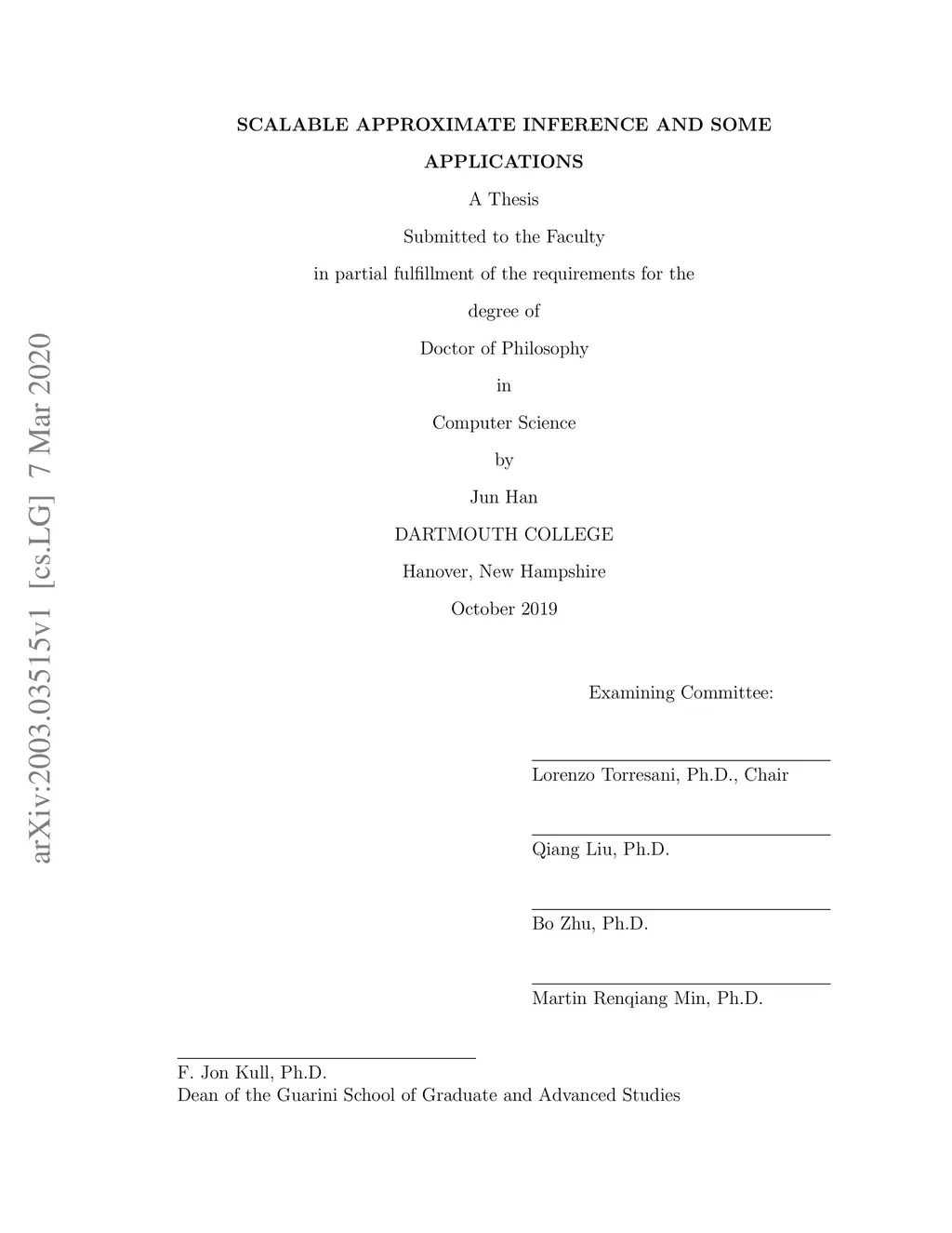 Scalable Approximate Inference and Some Applications