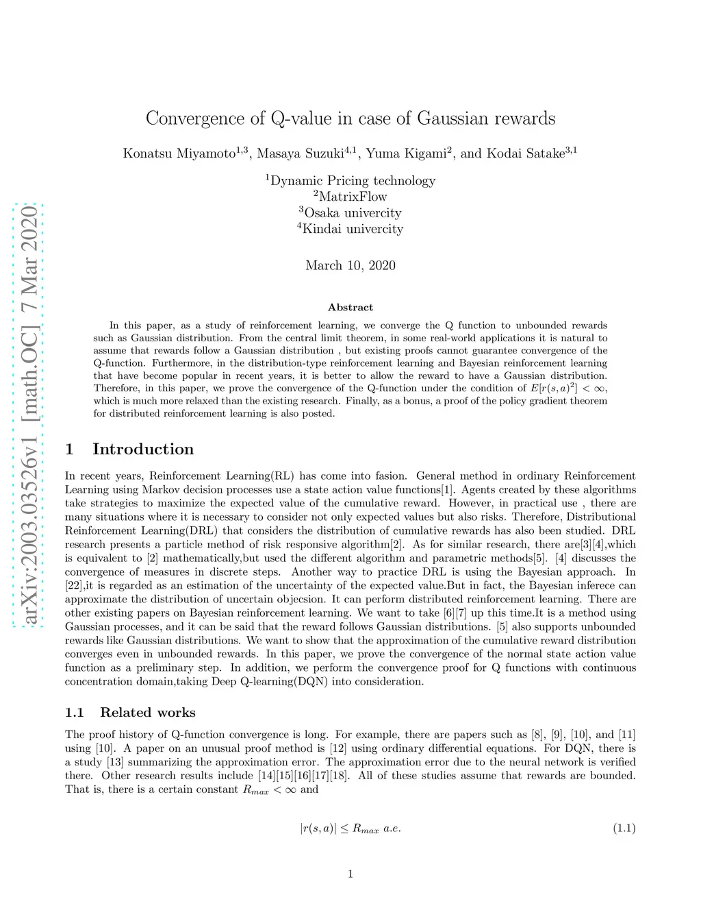 In this paper, as a study of reinforcement learning, we converge the Q function to unbounded rewards such as Gaussian distribution. From the central limit theorem, in some real-world applications it is natural to assume that rewards follow a Gaussian distribution , but existing proofs cannot guarantee convergence of the Q-function. Furthermore, in the distribution-type reinforcement learning and Bayesian reinforcement learning that have become popular in recent years, it is better to allow the reward to have a Gaussian distribution. Therefore, in this paper, we prove the convergence of the Q-function under the condition of , which is much more relaxed than the existing research. Finally, as a bonus, a proof of the policy gradient theorem for distributed reinforcement learning is also posted.