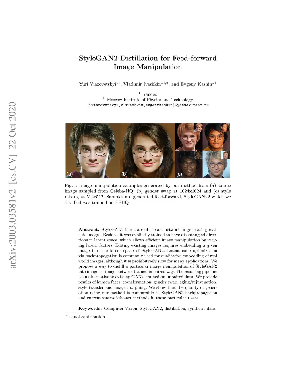 StyleGAN2 Distillation for Feed-forward Image Manipulation