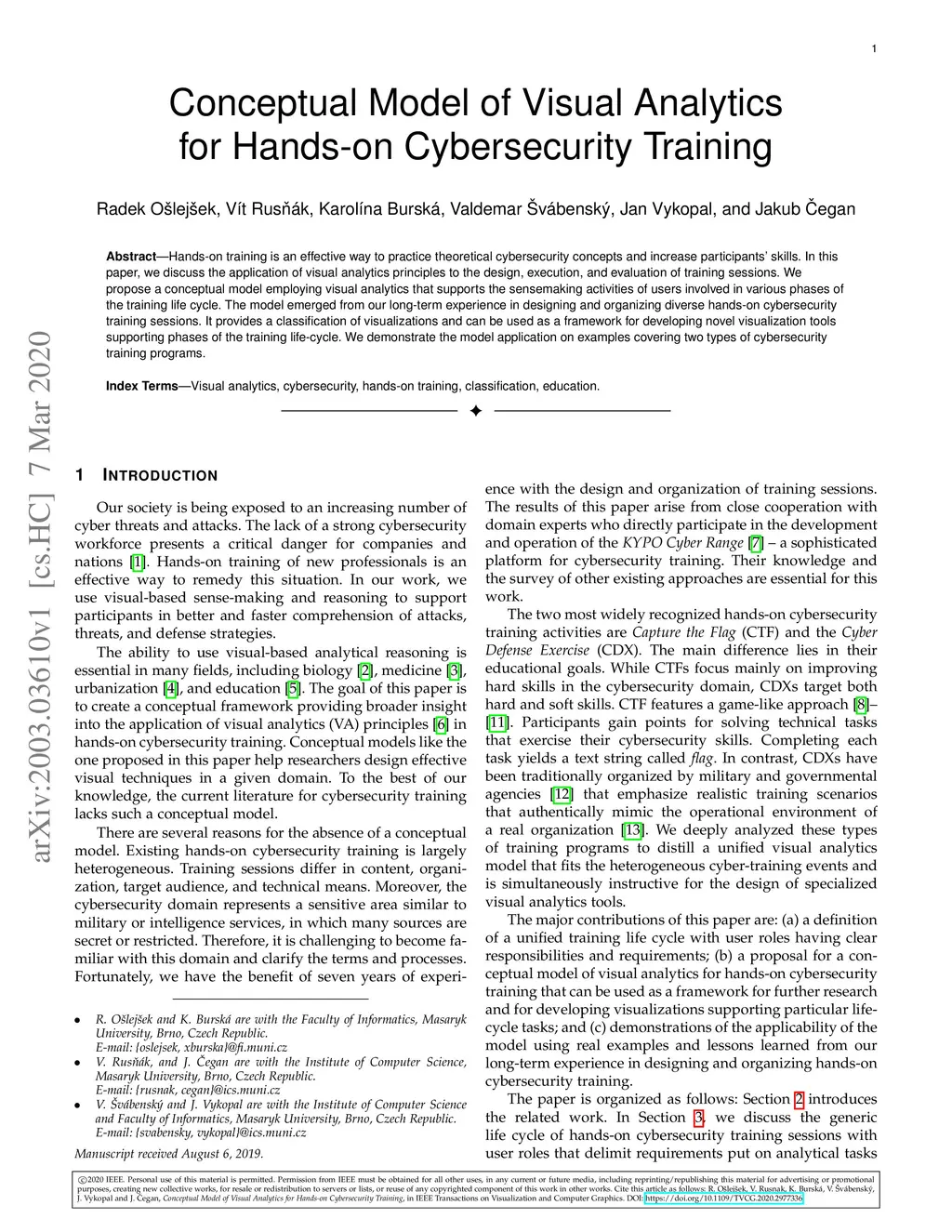 Conceptual Model of Visual Analytics for Hands-on Cybersecurity Training
