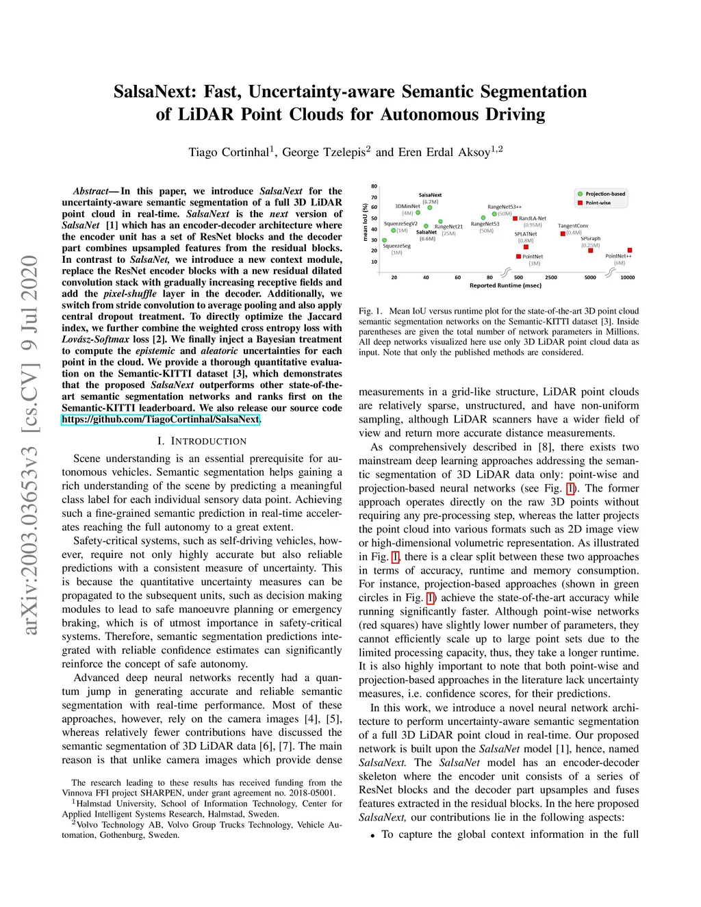 SalsaNext: Fast, Uncertainty-aware Semantic Segmentation of LiDAR Point