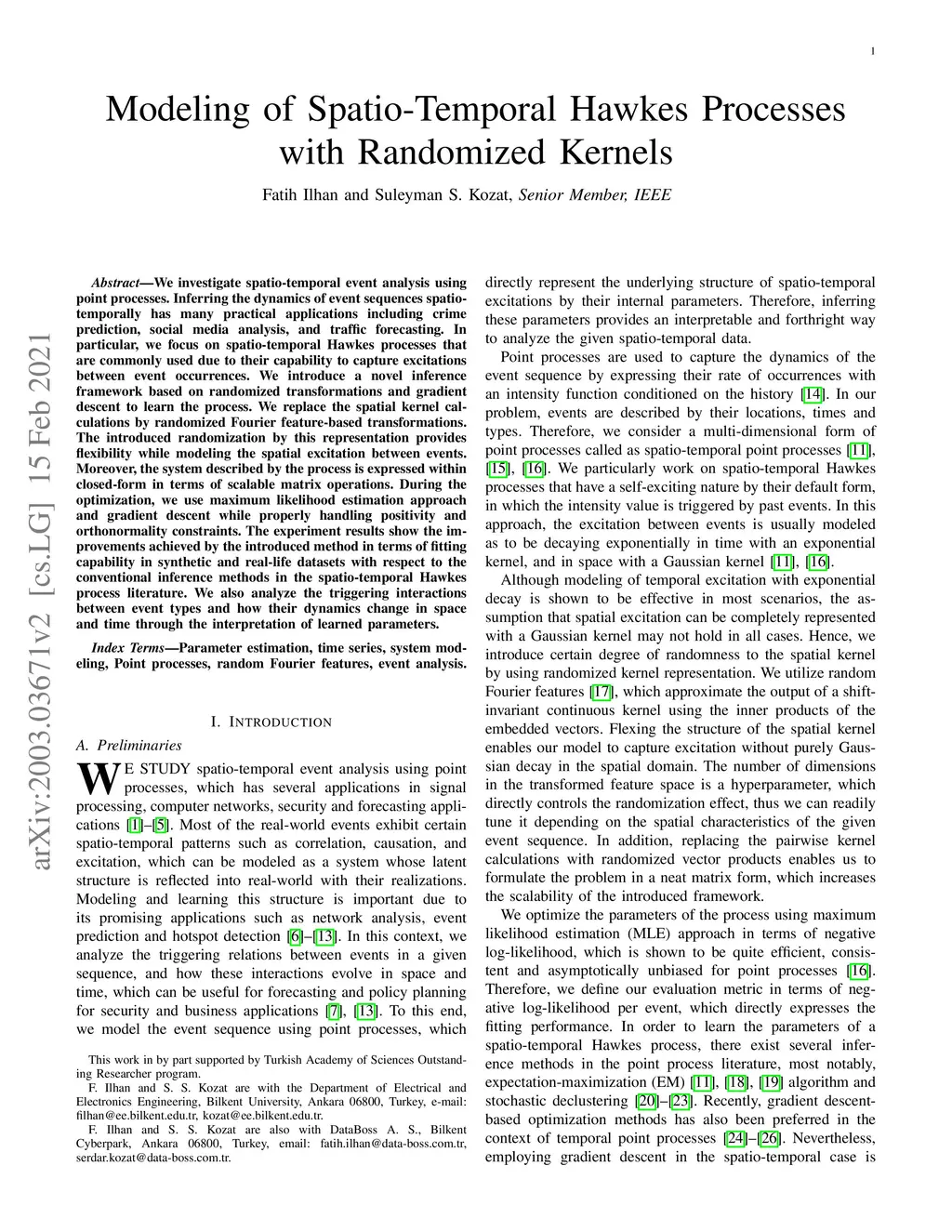 Modeling of Spatio-Temporal Hawkes Processes with Randomized Kernels