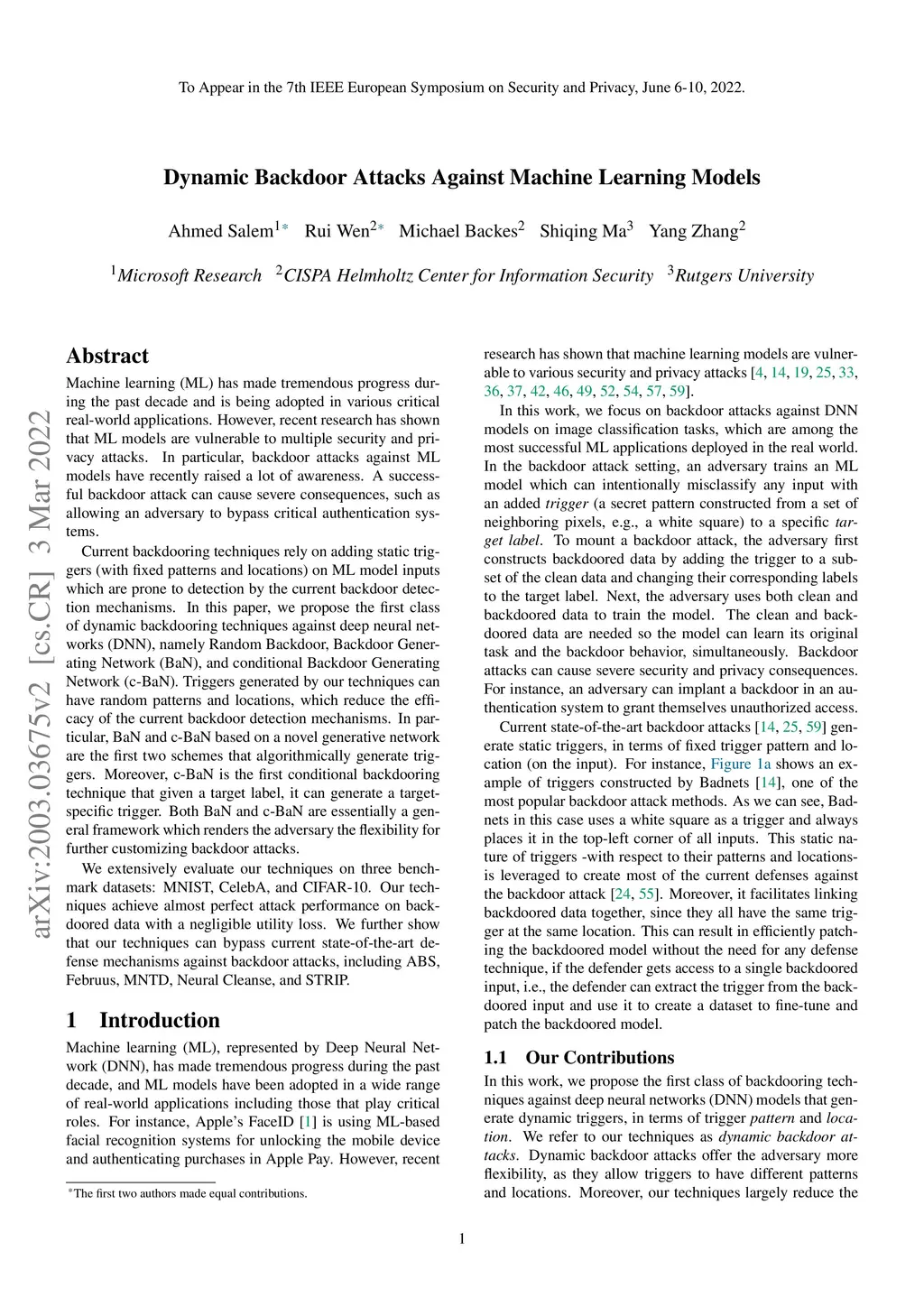 Dynamic Backdoor Attacks Against Machine Learning Models