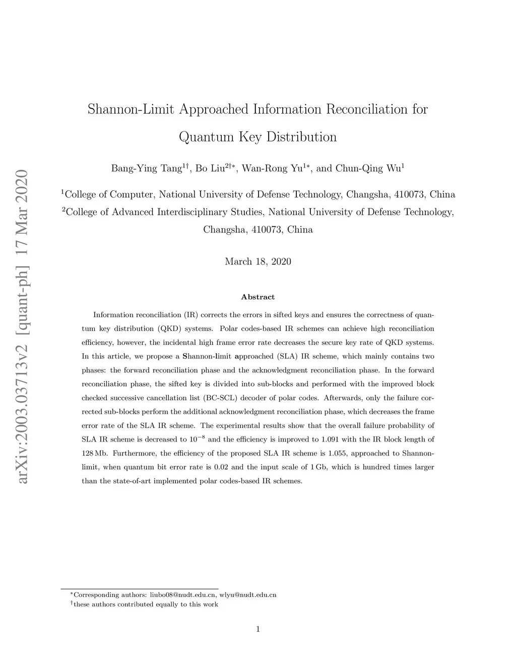 Shannon-Limit Approached Information Reconciliation for Quantum Key