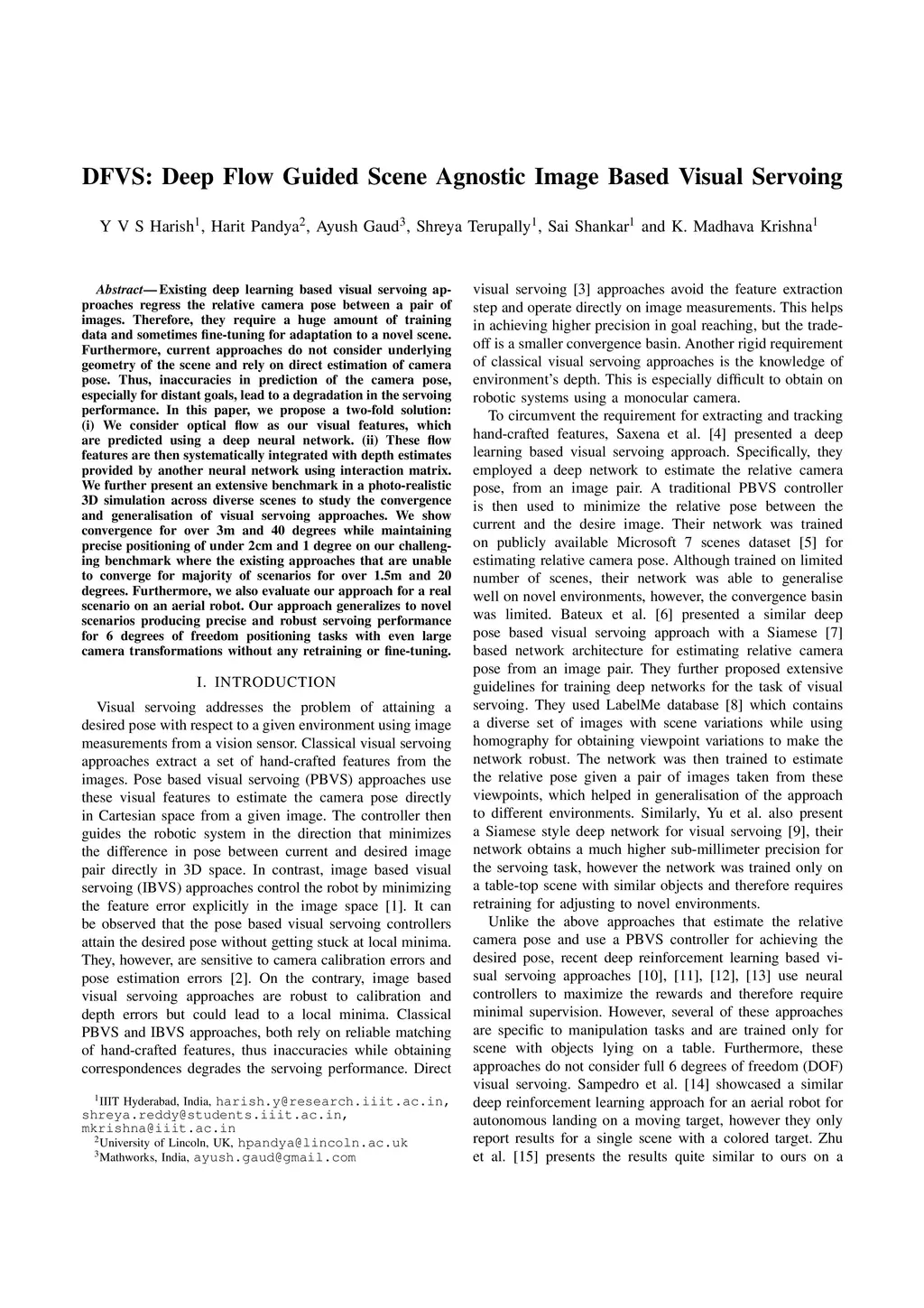 DFVS: Deep Flow Guided Scene Agnostic Image Based Visual Servoing