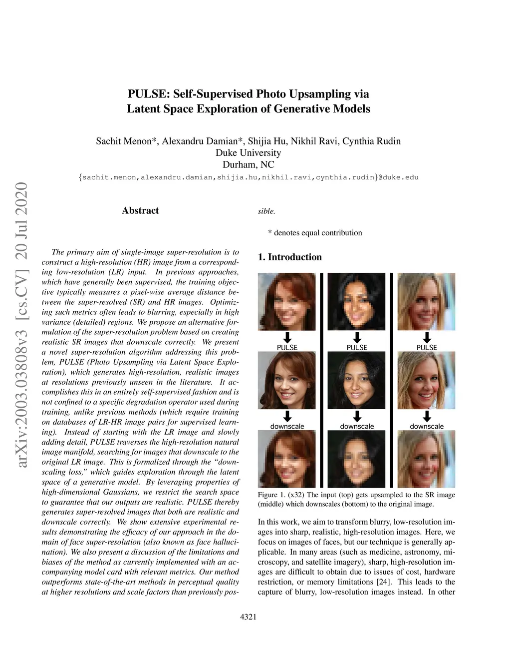 PULSE: Self-Supervised Photo Upsampling via Latent Space Exploration of