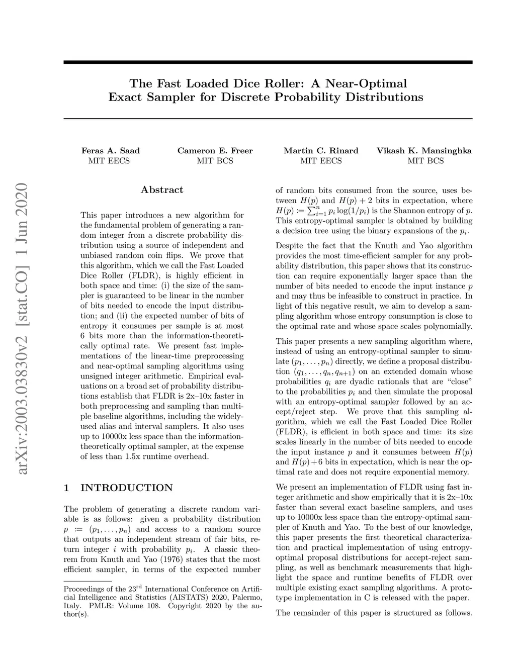 The Fast Loaded Dice Roller: A Near-Optimal Exact Sampler for Discrete