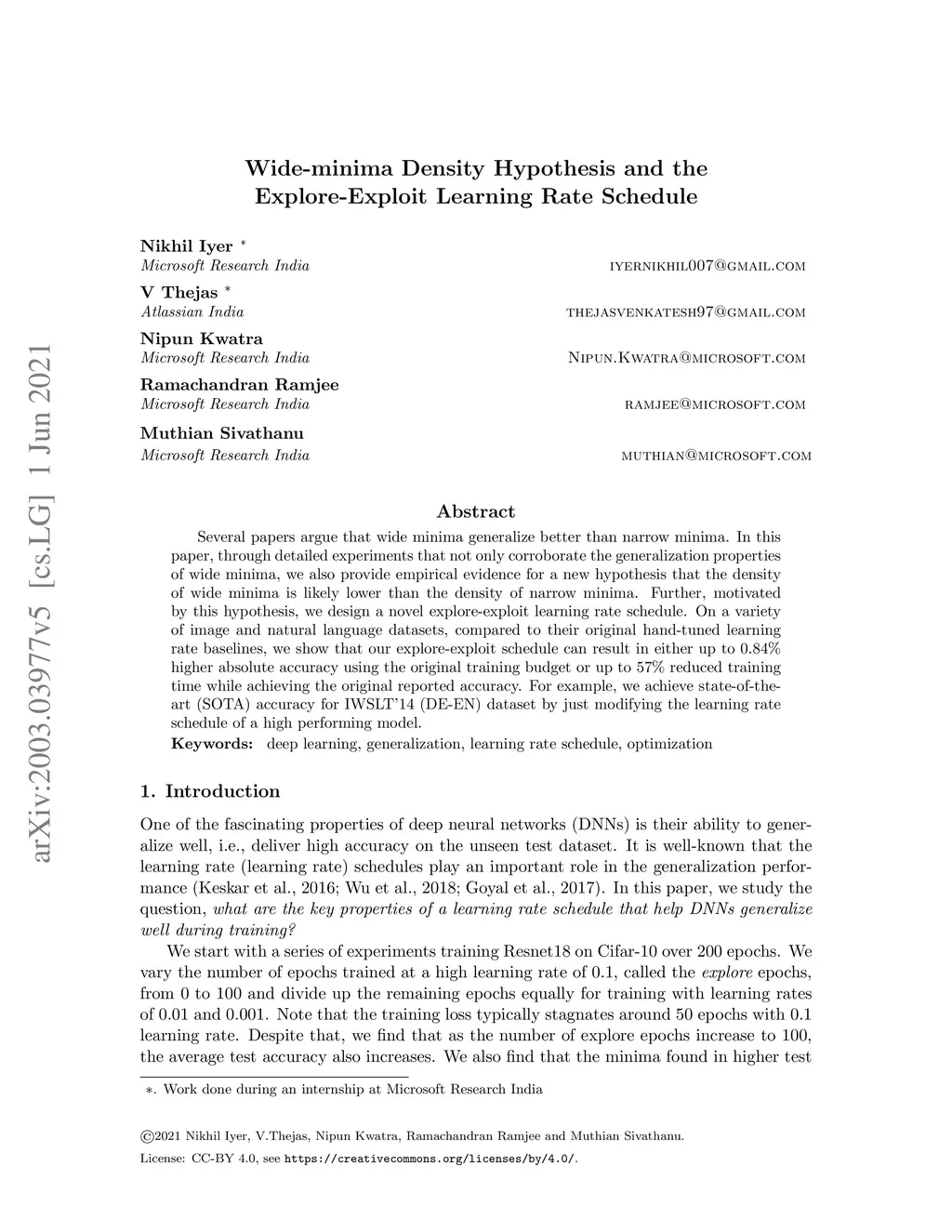Wide-minima Density Hypothesis and the Explore-Exploit Learning Rate
