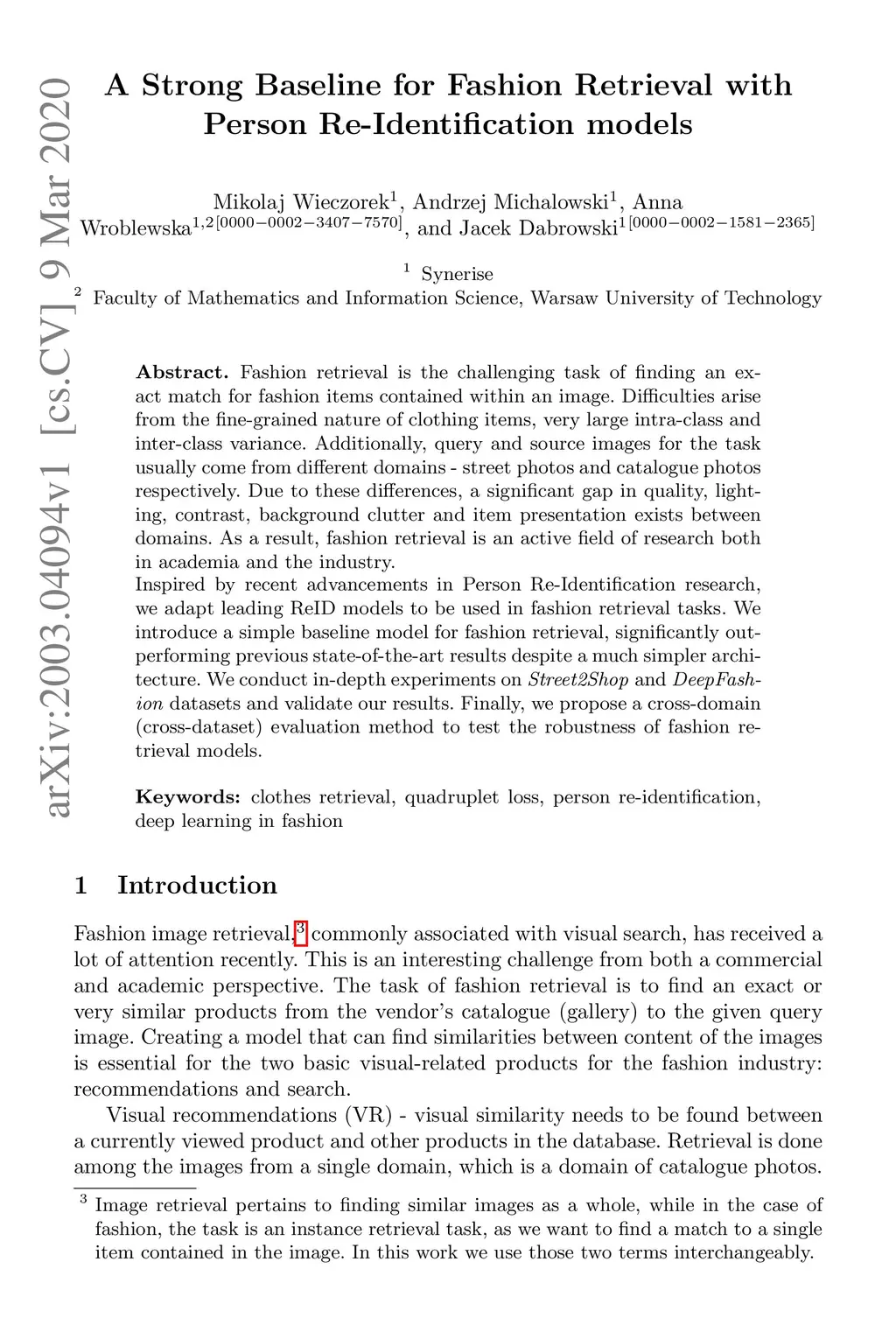 A Strong Baseline for Fashion Retrieval with Person Re-Identification