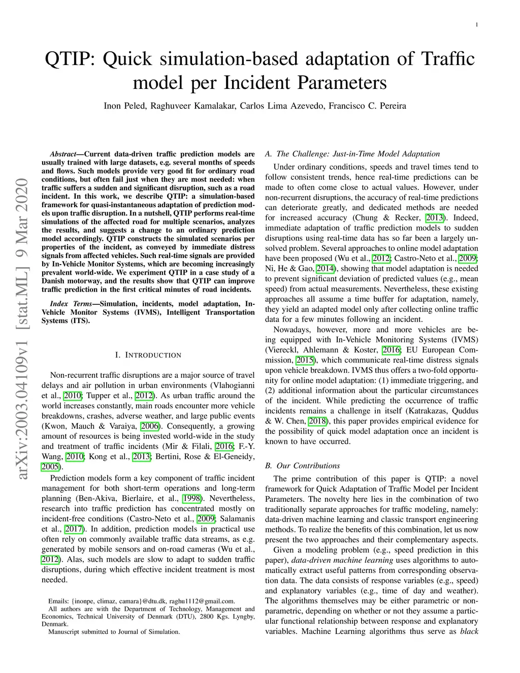 QTIP: Quick simulation-based adaptation of Traffic model per Incident