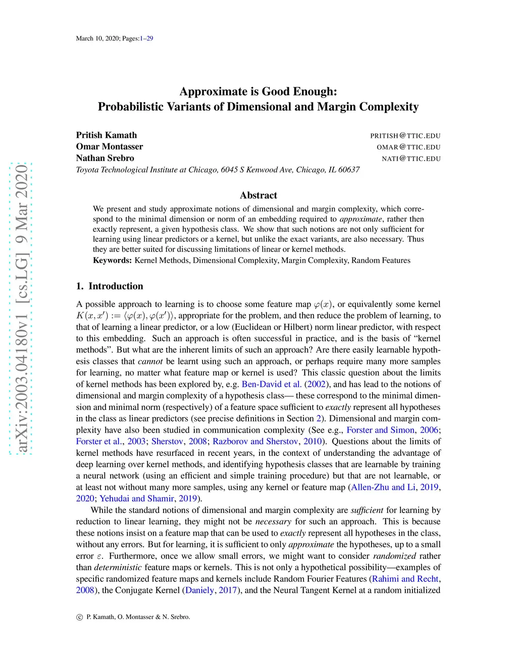 We present and study approximate notions of dimensional and margin complexity, which correspond to the minimal dimension or norm of an embedding required to approximate, rather then exactly represent, a given hypothesis class. We show that such notions are not only sufficient for learning using linear predictors or a kernel, but unlike the exact variants, are also necessary. Thus they are better suited for discussing limitations of linear or kernel methods.