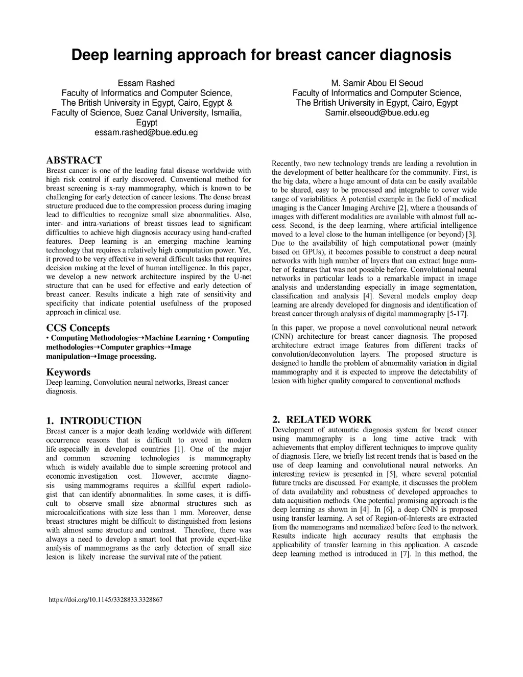 Deep learning approach for breast cancer diagnosis