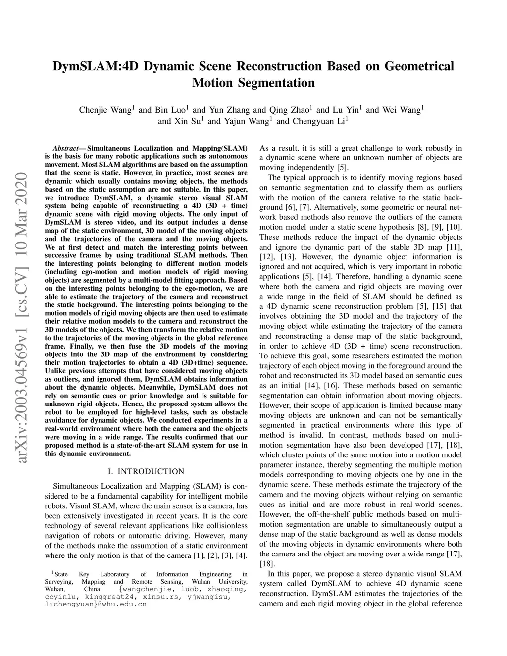 DymSLAM:4D Dynamic Scene Reconstruction Based on Geometrical Motion