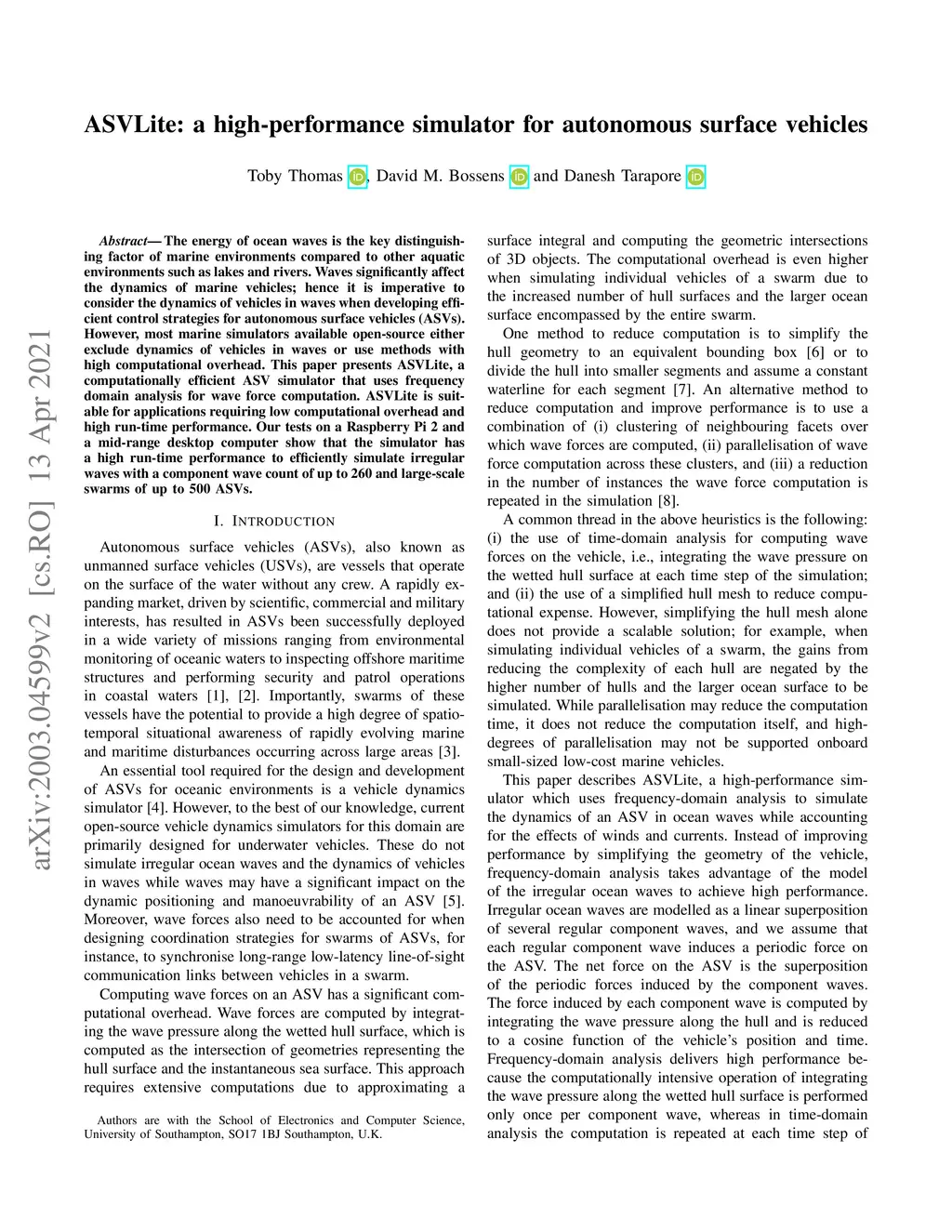 ASVLite: a high-performance simulator for autonomous surface vehicles