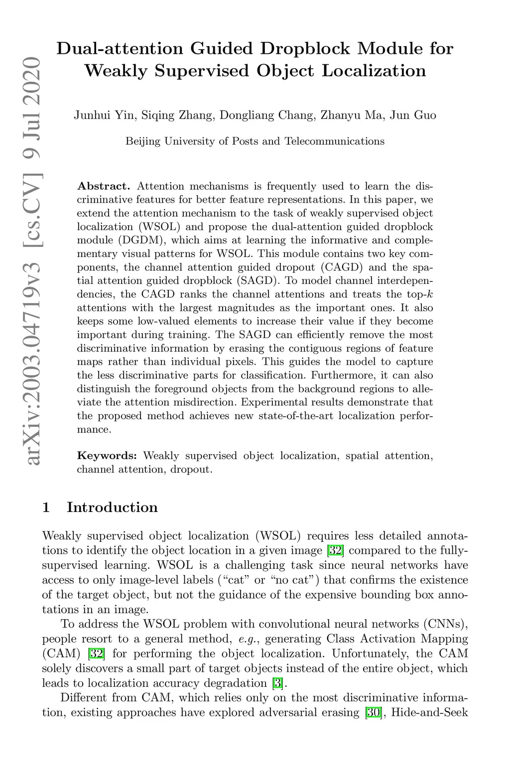 Dual-attention Guided Dropblock Module for Weakly Supervised Object