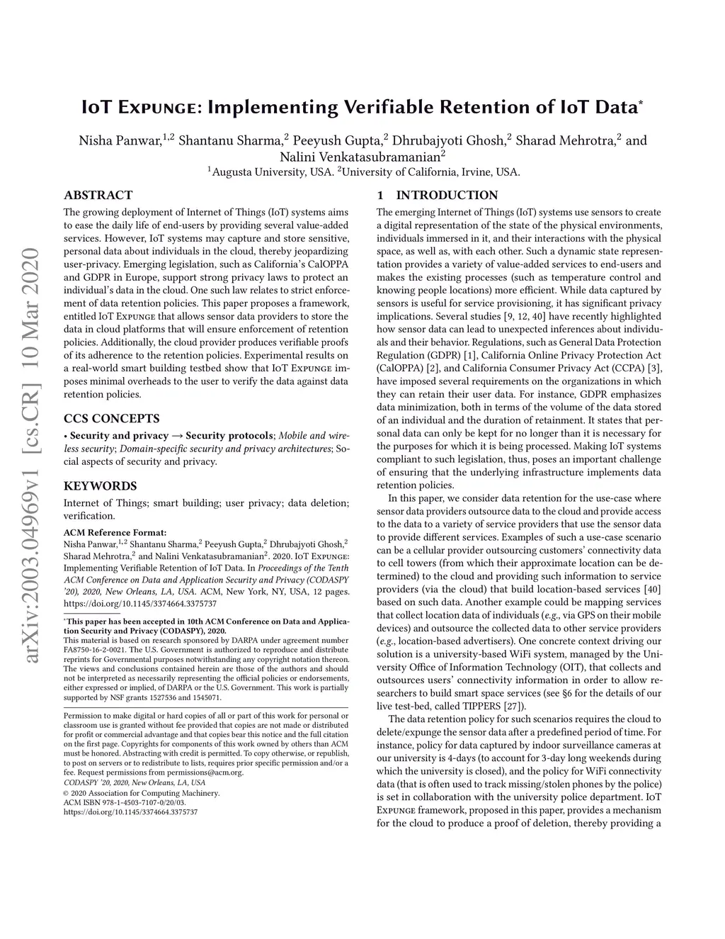 IoT Expunge: Implementing Verifiable Retention of IoT Data