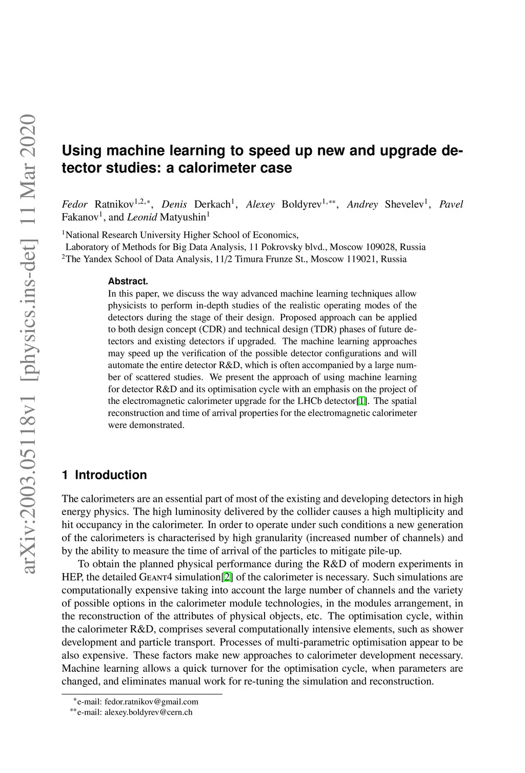 In this paper, we discuss the way advanced machine learning techniques allow physicists to perform in-depth studies of the realistic operating modes of the detectors during the stage of their design. Proposed approach can be applied to both design concept (CDR) and technical design (TDR) phases of future detectors and existing detectors if upgraded. The machine learning approaches may speed up the verification of the possible detector configurations and will automate the entire detector R\&D, which is often accompanied by a large number of scattered studies. We present the approach of using machine learning for detector R\&D and its optimisation cycle with an emphasis on the project of the electromagnetic calorimeter upgrade for the LHCb detector\cite{lhcls3}. The spatial reconstruction and time of arrival properties for the electromagnetic calorimeter were demonstrated.