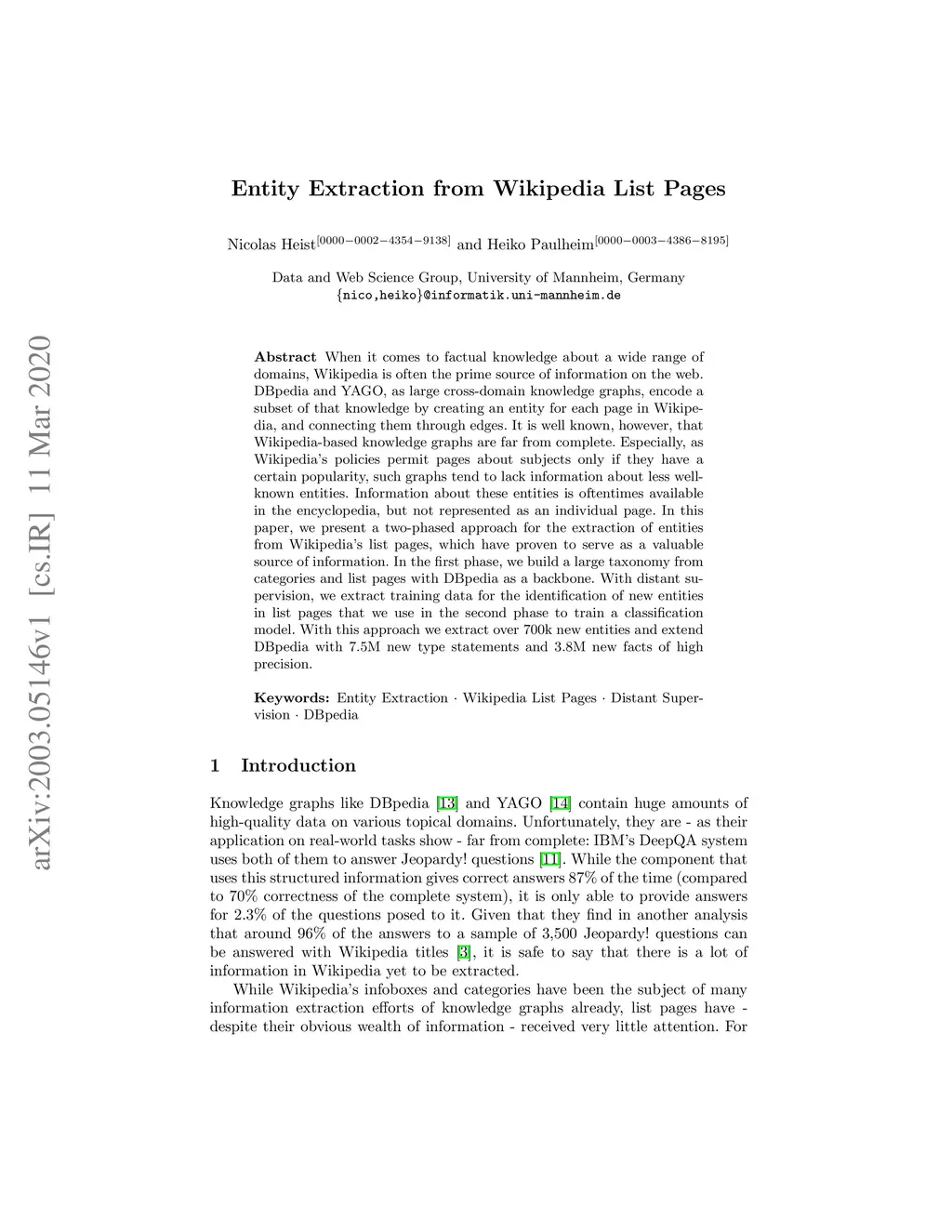 Entity Extraction from Wikipedia List Pages
