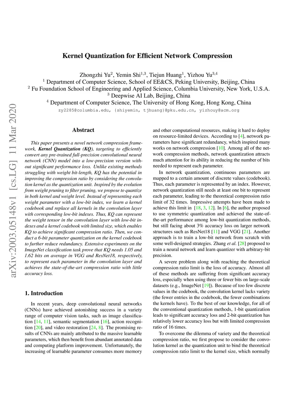 This paper presents a novel network compression framework Kernel Quantization (KQ), targeting to efficiently convert any pre-trained full-precision convolutional neural network (CNN) model into a low-precision version without significant performance loss. Unlike existing methods struggling with weight bit-length, KQ has the potential in improving the compression ratio by considering the convolution kernel as the quantization unit. Inspired by the evolution from weight pruning to filter pruning, we propose to quantize in both kernel and weight level. Instead of representing each weight parameter with a low-bit index, we learn a kernel codebook and replace all kernels in the convolution layer with corresponding low-bit indexes. Thus, KQ can represent the weight tensor in the convolution layer with low-bit indexes and a kernel codebook with limited size, which enables KQ to achieve significant compression ratio. Then, we conduct a 6-bit parameter quantization on the kernel codebook to further reduce redundancy. Extensive experiments on the ImageNet classification task prove that KQ needs 1.05 and 1.62 bits on average in VGG and ResNet18, respectively, to represent each parameter in the convolution layer and achieves the state-of-the-art compression ratio with little accuracy loss.