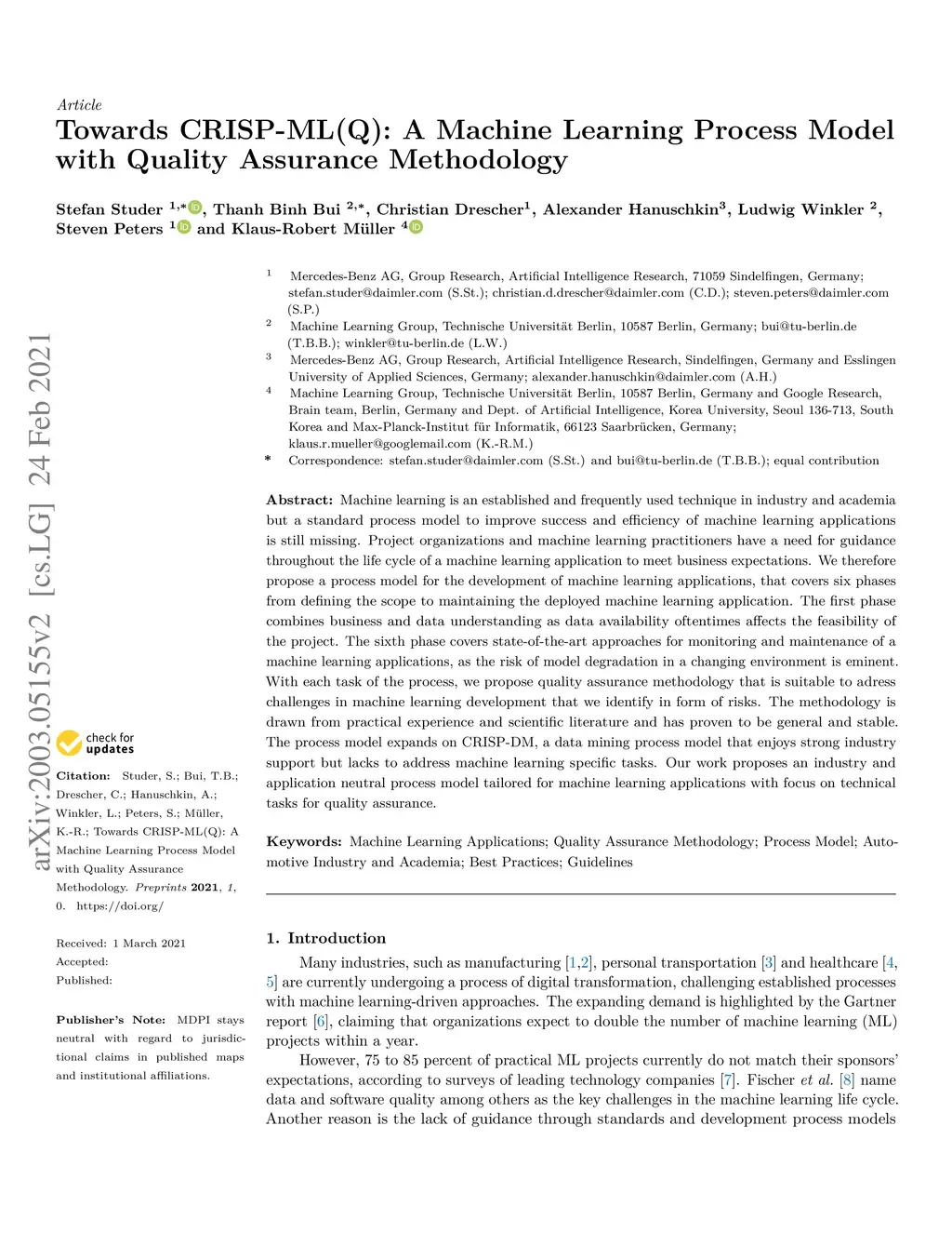 Towards CRISP-ML(Q): A Machine Learning Process Model with Quality