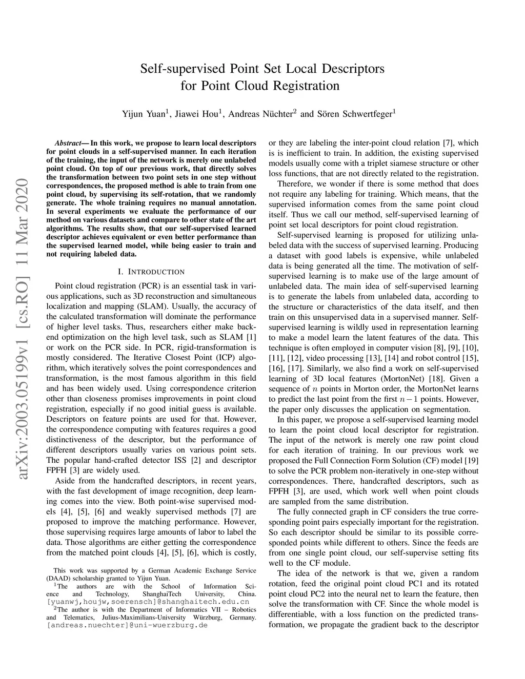Self-supervised Point Set Local Descriptors for Point Cloud Registration
