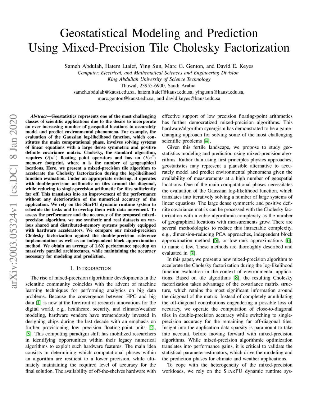 Geostatistical Modeling and Prediction Using Mixed-Precision Tile